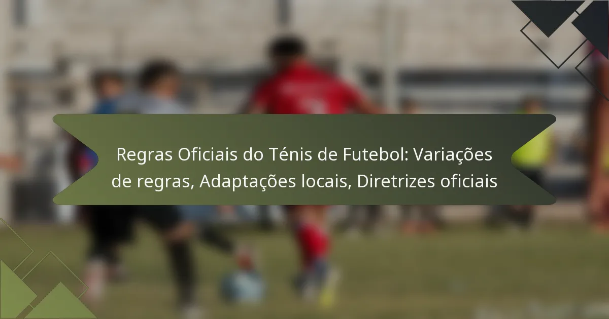 As regras oficiais do futebol-tenis combinam elementos do futebol e do ténis, focando na habilidade, trabalho em equipa e desportivismo. Os jogadores marcam pontos ao bater uma bola por cima de uma rede e para o campo do adversário, utilizando qualquer parte do corpo, exceto as mãos e os braços. Existem várias adaptações das regras com base na localização e no nível de habilidade, tornando crucial para os jogadores compreenderem estas diferenças para garantir um jogo justo em ambientes diversos.