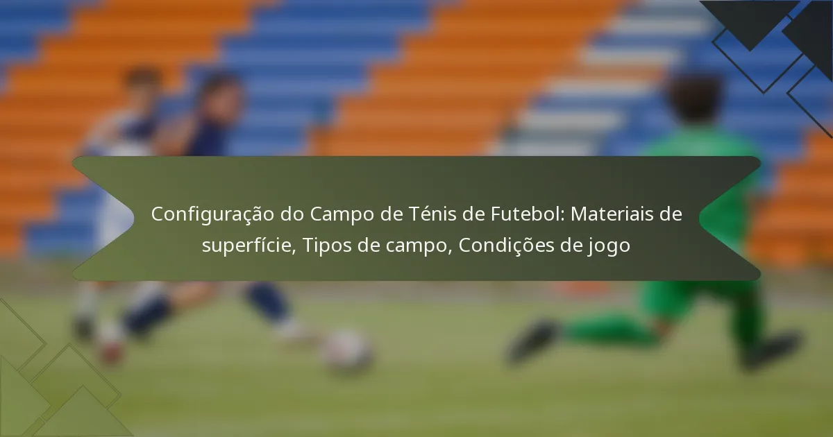 Os materiais de superfície essenciais para um campo de futebol-tenis incluem relva natural, relva artificial, terra batida e opções de campo duro. Cada tipo tem características distintas, requisitos de manutenção e implicações de desempenho que podem afetar o jogo e a experiência do jogador.